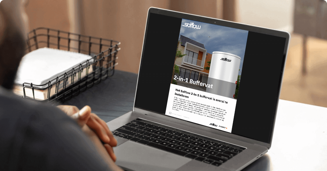 Het 2-in-1 buffervat is ontworpen om ruimte te besparen en de installatie te vereenvoudigen.