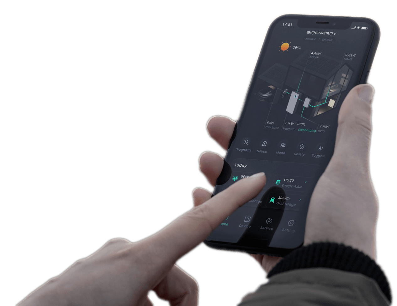 Dankzij de DC-gekoppelde laadmodule van SigenStor, kunt u gebruik maken van de energie van de zon en uw EV direct opladen met schone zonne-energie.